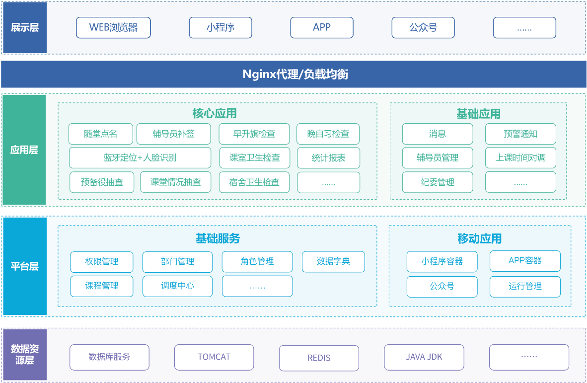智慧考勤是考勤系統(tǒng)的核心業(yè)務(wù)模塊,包含了“智能考勤”、“隨堂點(diǎn)名(藍(lán)牙+面部識(shí)別)”、“課后補(bǔ)簽”三種考勤方式,根據(jù)實(shí)際業(yè)務(wù)需求,采用不同的考勤方式。