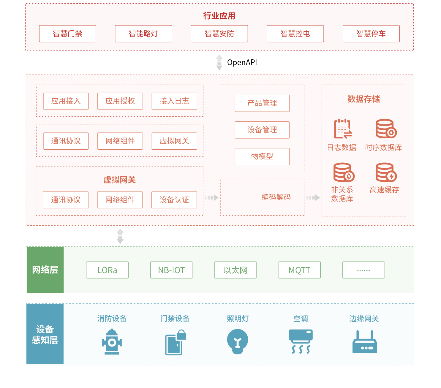 平臺(tái)提供了豐富的API,支持三方系統(tǒng)的快速接入,用以支撐業(yè)務(wù)與底層設(shè)備的解耦,不必關(guān)注硬件底層通訊層。