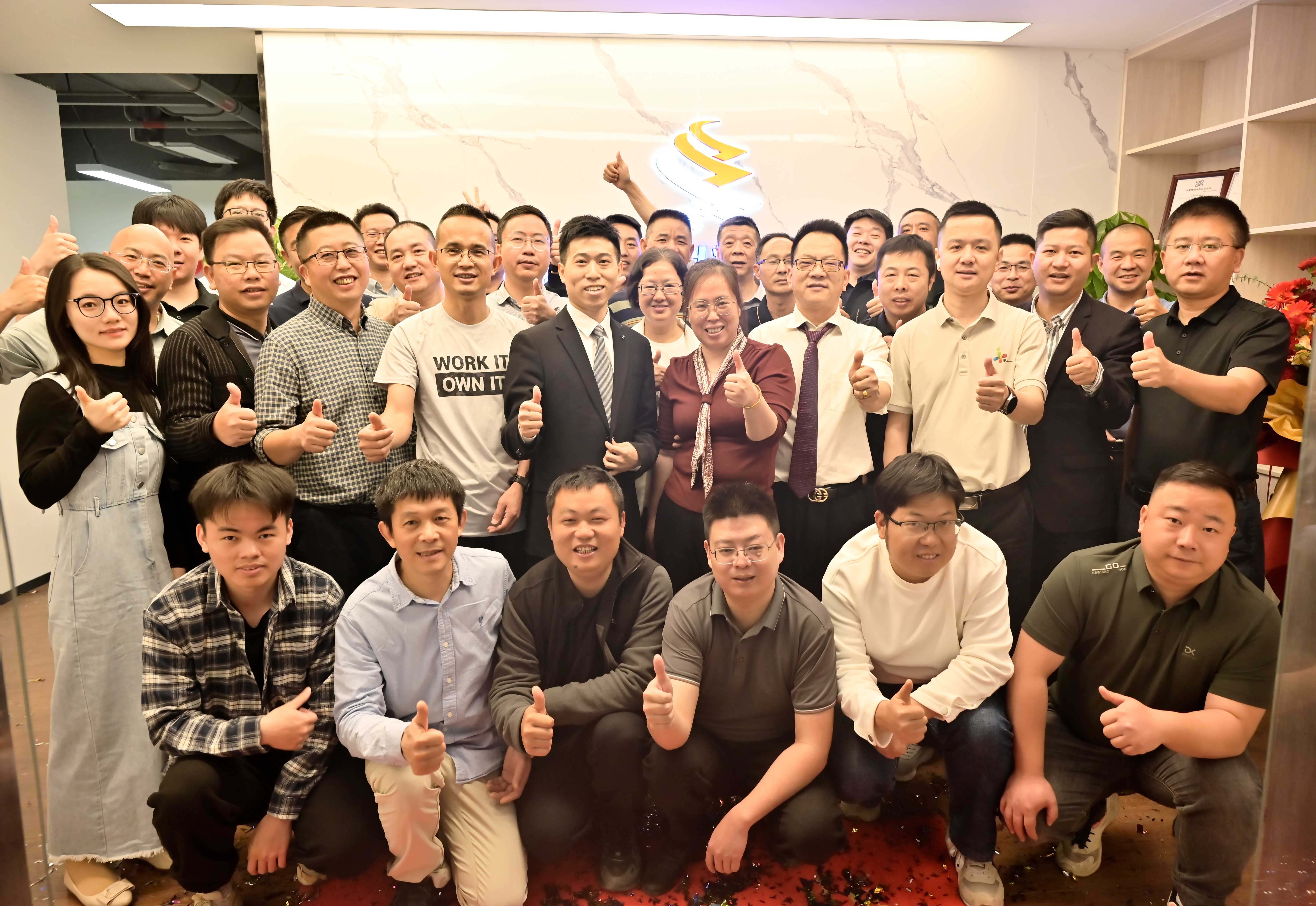 致辭結(jié)束后,全體人員移步至公司前臺,進(jìn)行了溫馨而莊重的大合影。大家面帶微笑,精神抖擻,將這一具有紀(jì)念意義的時刻定格。鏡頭中,鏡頭定格的瞬間,公司領(lǐng)導(dǎo)們堅定的眼神,宛如銳利的劍鋒,直指未來發(fā)展的制高點;員工們洋溢著喜悅與自豪的笑臉,恰似熊熊燃燒的火焰,彰顯著拼搏后的無限激情。與此同時,朋友兄弟們的祝福如滾滾驚雷,響徹云霄,為公司新征程的開啟注入了磅礴動力!